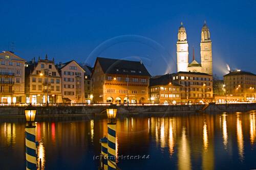 Schweiz, Zuerich, Stadt, Suisse, Reise, City, Zurich, Tourismus, Staedtereise, Tourism, Switzerland, Zþrich, Limmat, Kirchen, Grossmuenster, Stadthaus, Dämmerung, Fluss, Anlegesteg, Hotel Storchen, Romantik, Beleuchtung, |