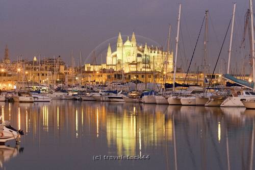 architecture, Balearen, Beleuchtung, blue, boat, boats, cathedral, church, dawn, europe, holyday, illumination, Kalendermotiv, kathedral, Kathedrale, katholic, Kirche, la, Mallorca, marina, Nacht, port, postcard, reflection, Reisen, religion, romantic, sailing, seo, spain, sunset, travel, travelstock44.de, |